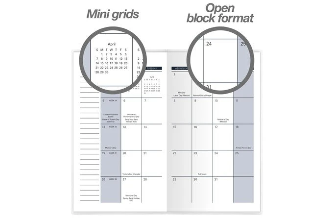 Feel the tropical breeze and enjoy colorful sunsets as you plan your time. Pocket size planner helps you stay organized for up to 2 years in advance.