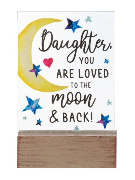Radiate love and affection with the ‘Daughter, You Are Loved to the Moon & Back’ Glass Block. This beautifully crafted piece is a heartfelt expression of the immeasurable love a parent feels for their daughter, creating a timeless and sentimental keepsake.