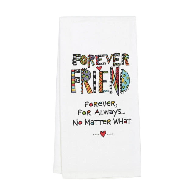 Keep the kitchen tidy and bonds tight with this personalized tea towel made for friends. Colorful embroidery creates a stylish statement and salutes them for their role in your life. A sweet message reads: “Forever, for always… no matter what.”