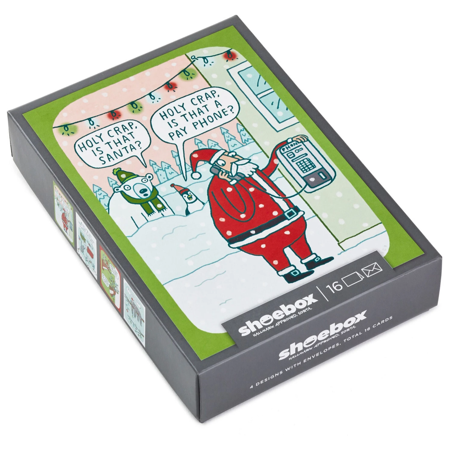 Santa at pay phone design: Holy crap, is that Santa? Holy crap, is that a pay phone?; Hope your Christmas is full of surprises.