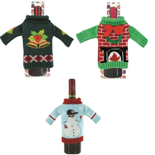 Tacky knits make the perfect gifts! Spruce up your favorite wine bottles (or dress up your favorite holiday elf, gnome. or stuffed animal) with designs straight out of the attic. Christmas-spirited styles that are so wacky you just have to love.