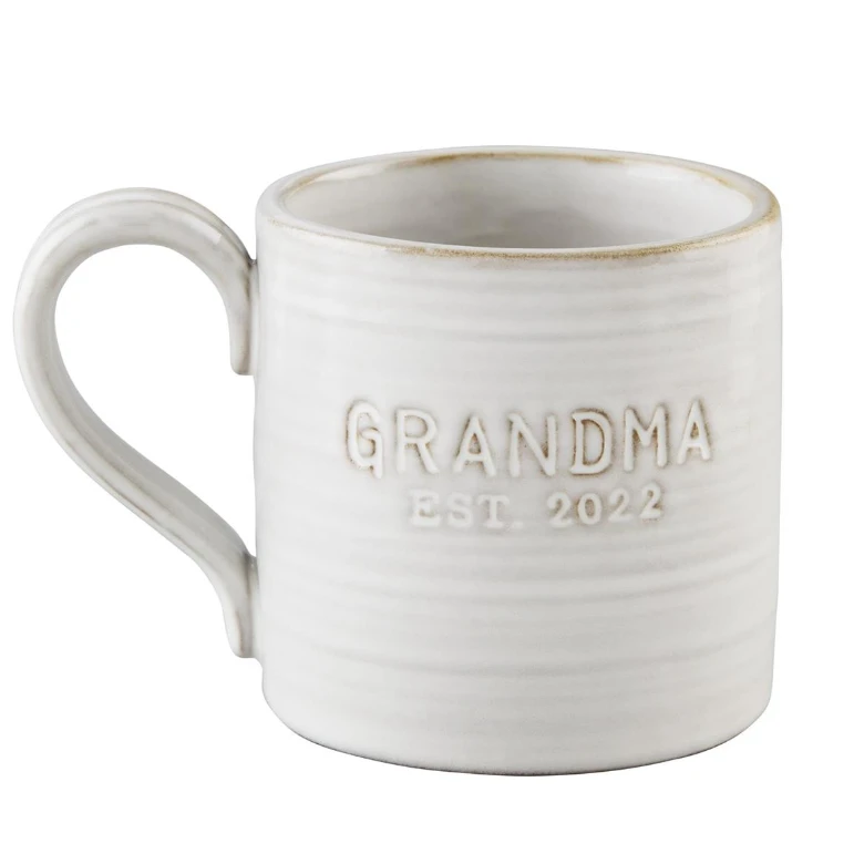 Give a unique gift to the new grandma that she will forever treasure. This beautifully glazed terra cotta mug has a debossed sentiment exterior. It celebrates the new Grandma, established 2022!