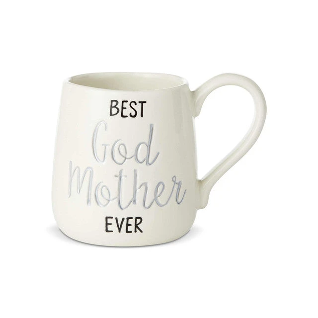A Godmother is a blessing. This heartfelt stoneware coffee mug features engraved and hand-drawn script lettering and front and back messaging 16 oz. capacity. Dishwasher and microwave safe.