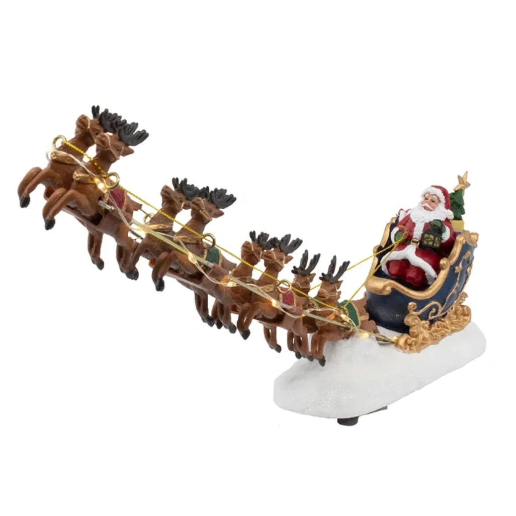 Santa In Sleigh With Flying Reindeers LED Lighted Tabletop